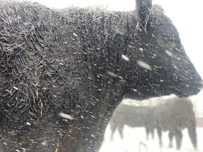 Our cattle feed on wild grasses 365 days per year. These North Dakota grasses provide an unmatched richness to our beef. In the winter, when weather gets brutally harsh, we often see temperatures in the -40F range. During these frigid temps, cattle require significantly more protein to stay warm. During those times, we allow our cattle to have access to peas that we grow ourselves, free of any harmful chemicals. By allowing our cattle to self-regulate their body temperatures, they remain far healthier than they would in a heated barn, with thriving immune systems. By maintaining optimal health, we're able to avoid the use of any vaccines or medications.